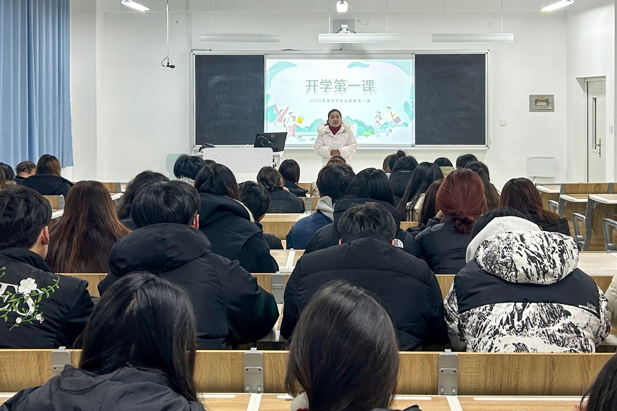 班会上,辅导员围绕“学风教育、消防安全、校园防骗、校园防欺凌、毒品教育、交通安全、心理调适”等方面,结合典型案例、图片及视频等形式,帮助学生快速适应新学期的学习生活。引导同学们养成良好的学习与作息习惯,精心制定合理的新学期计划,不仅在专业学习上深耕细作,提升专业能力,也要积极投身日常社交、志愿服务等活动,在实践中锤炼自我,提升个人修养,力求度过充实且富有意义的大学时光。