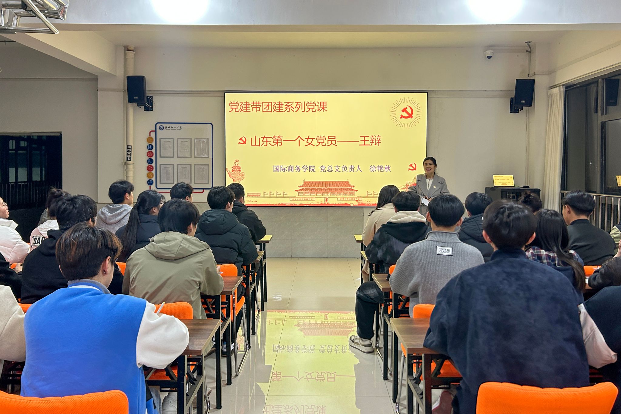 为深入学习贯彻党的二十大精神,充分发挥“一站式”学生社区导师育人作用,进一步强化青年学生的思想政治引领。3月31日晚,我院党总支负责人走进蕙兰社区,以“山东第一个女党员——王辩”为主题,为师生党员、共青团干部及青年学生代表讲授专题党课。