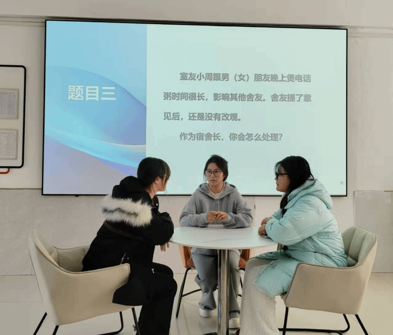 为了让比赛贴合实际需求、直击宿舍管理痛点,活动前期,主办方开展深入调研,面向蕙兰社区全体宿舍长广泛收集宿舍日常管理中常见的实际问题,并基于真实诉求科学设计比赛题目。比赛采用“情景模拟+思路答辩”模式,选手随机抽取真实宿舍问题场景,与工作人员扮演的“舍友”沟通协调,提出切实可行的解决方案,展现出了良好的沟通技巧、应变能力与责任意识。评委团队从问题分析、解决方案、沟通技巧、应变能力四个维度进行综合评分,最终评选出一、二、三等奖。